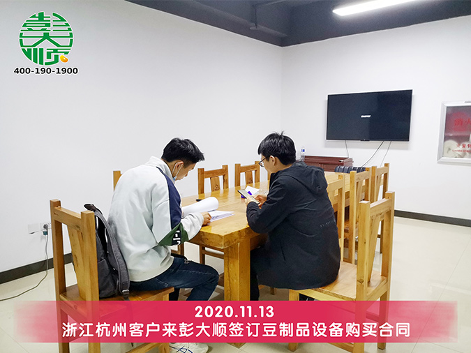 實地考察完之后,客戶與彭大順愉快簽定豆腐機設(shè)備購買合同。客戶選擇彭大順設(shè)備,用現(xiàn)代化設(shè)備做傳統(tǒng)地鍋味豆腐,質(zhì)量好、效率高!改變老套的經(jīng)營方式,加入自己的想法,讓豆腐店經(jīng)營更出彩。